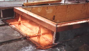 Rinne zwischen Profilblechdach und Schrägverglasung