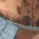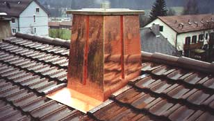 Tablett in Kupferblech mit Bleilappen für Anschluss an Ziegel